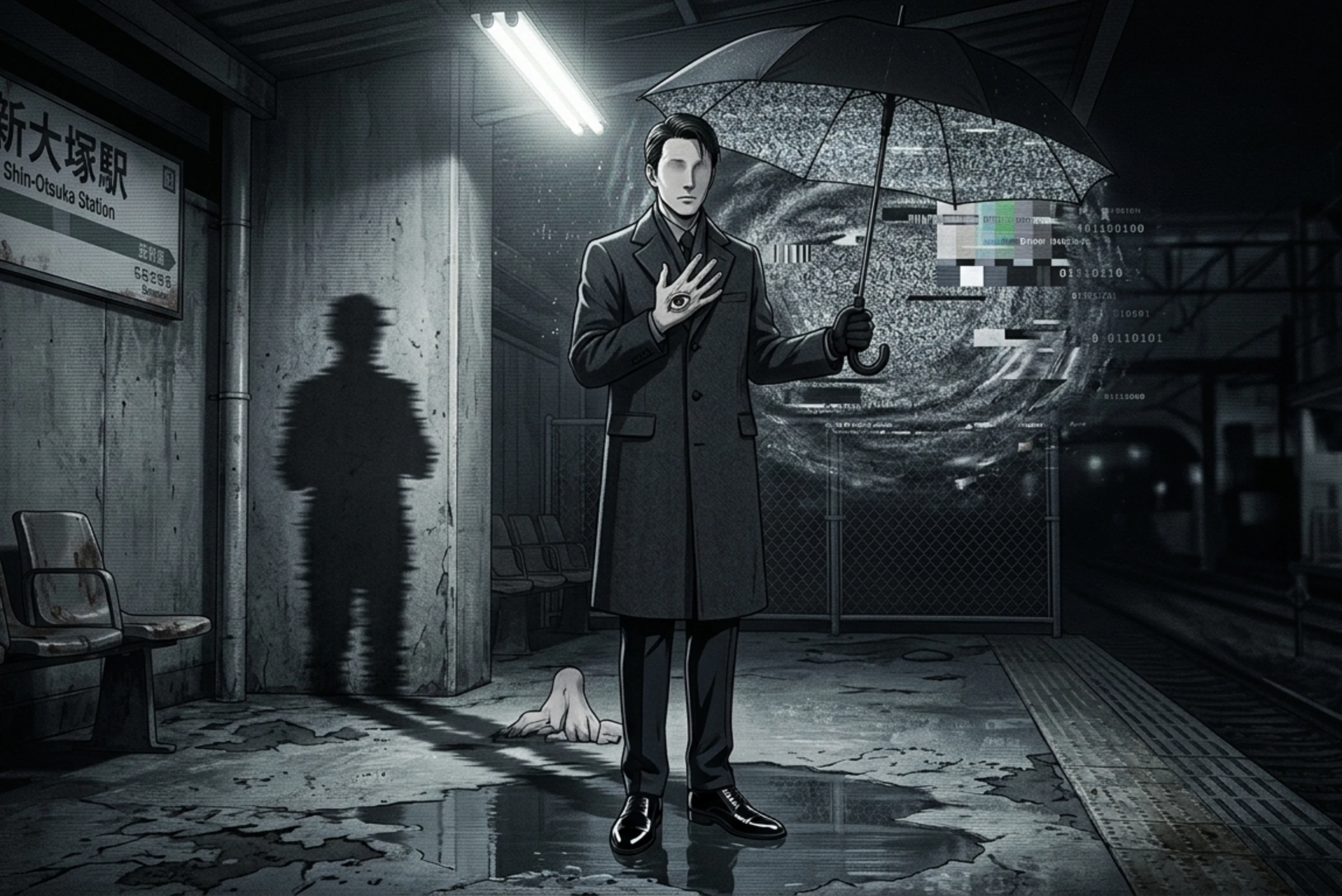 The intersection outside Shirogane Station should have been empty at that hour, and mostly it was. The traffic lights cycled through red and green for no one. Rainwater had collected in the cracks near the curb. A convenience store sign buzzed softly across the street. I stood under the awning and listened.