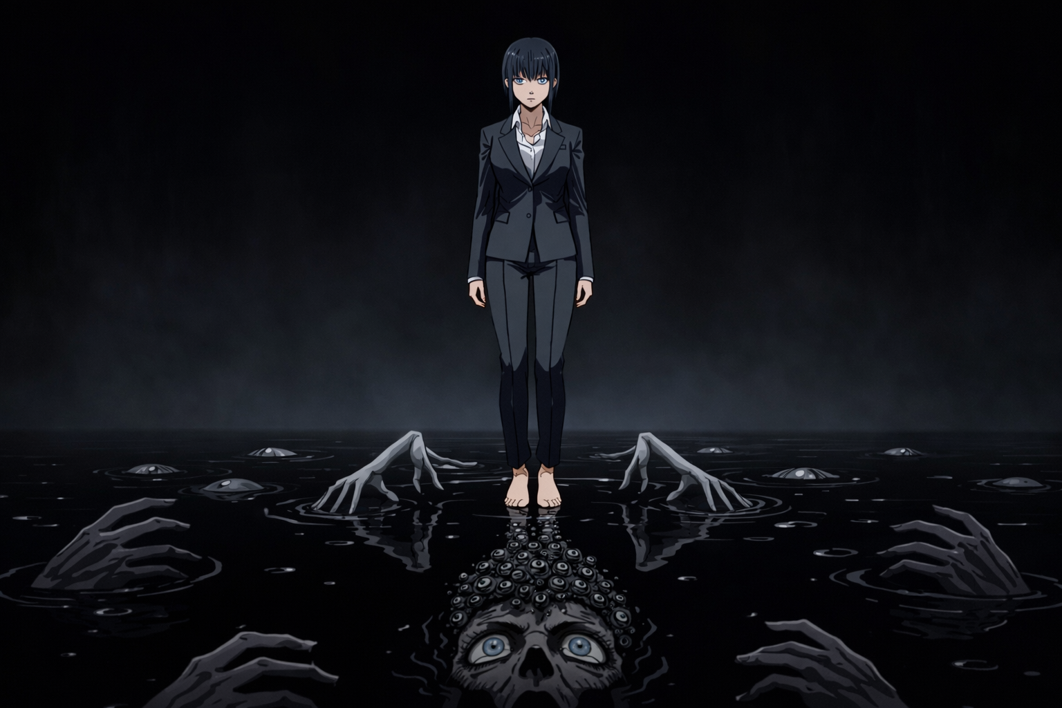 The water—or whatever it was—had risen to her ankles now. Dark, reflective, and perfectly still except where her movements disturbed it. She looked down and saw not her reflection but depth, as if something beneath the surface extended farther than the room itself could contain.