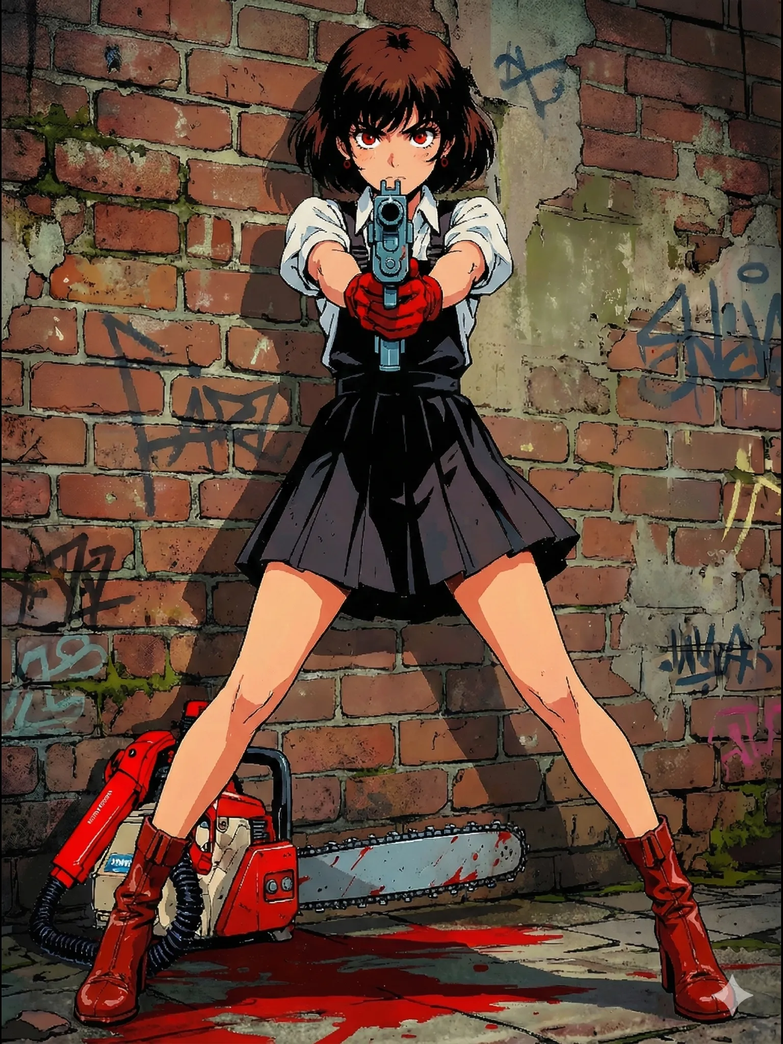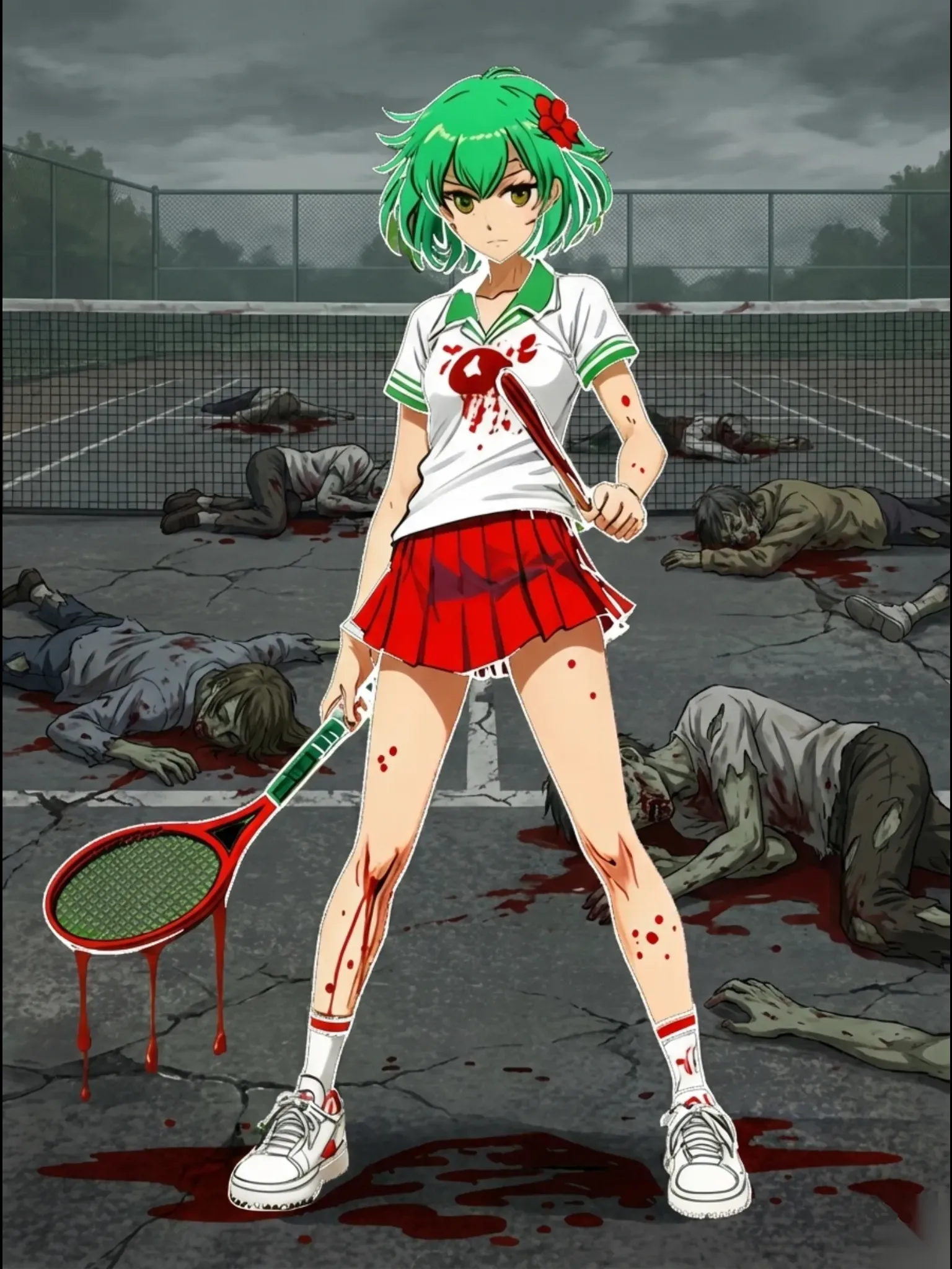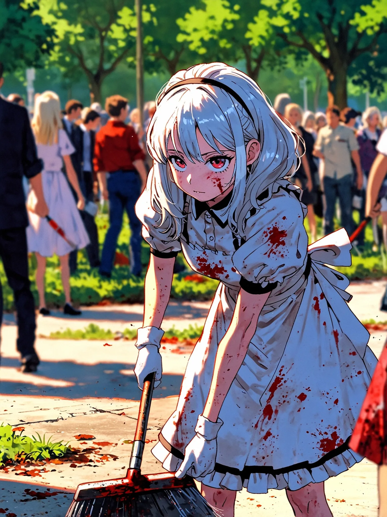 A quiet, distant girl with a bloodstained apron and unreadable gaze — Kana cleans up after others, but the real mess might be inside her.
