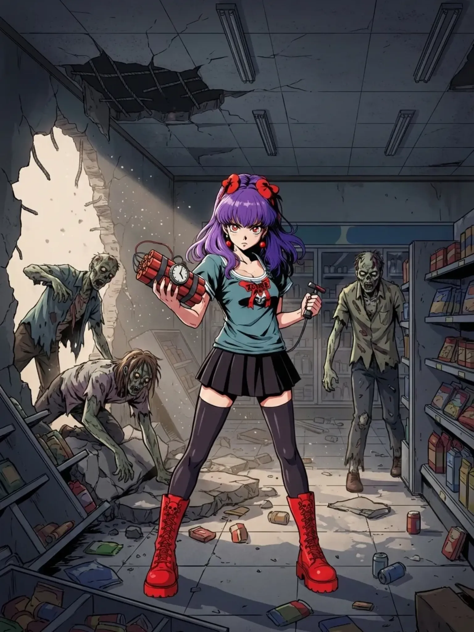 Explosive arcade girl turned zombie demolitions expert, leaving graffiti and rubble wherever she goes.