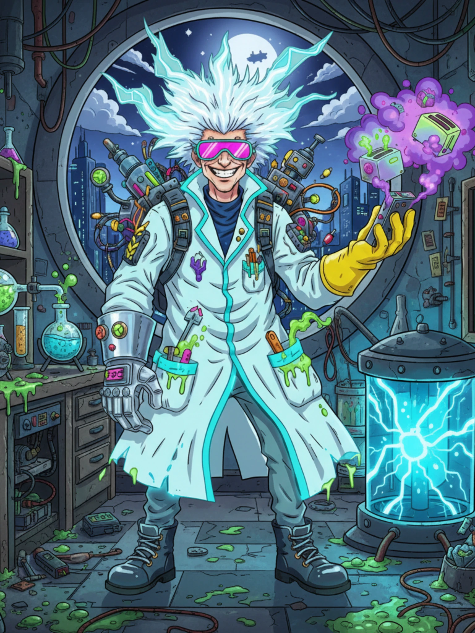 Chaotic tech genius of Hyperforce 3000, armed with duct tape, caffeine, and a questionable physics degree.