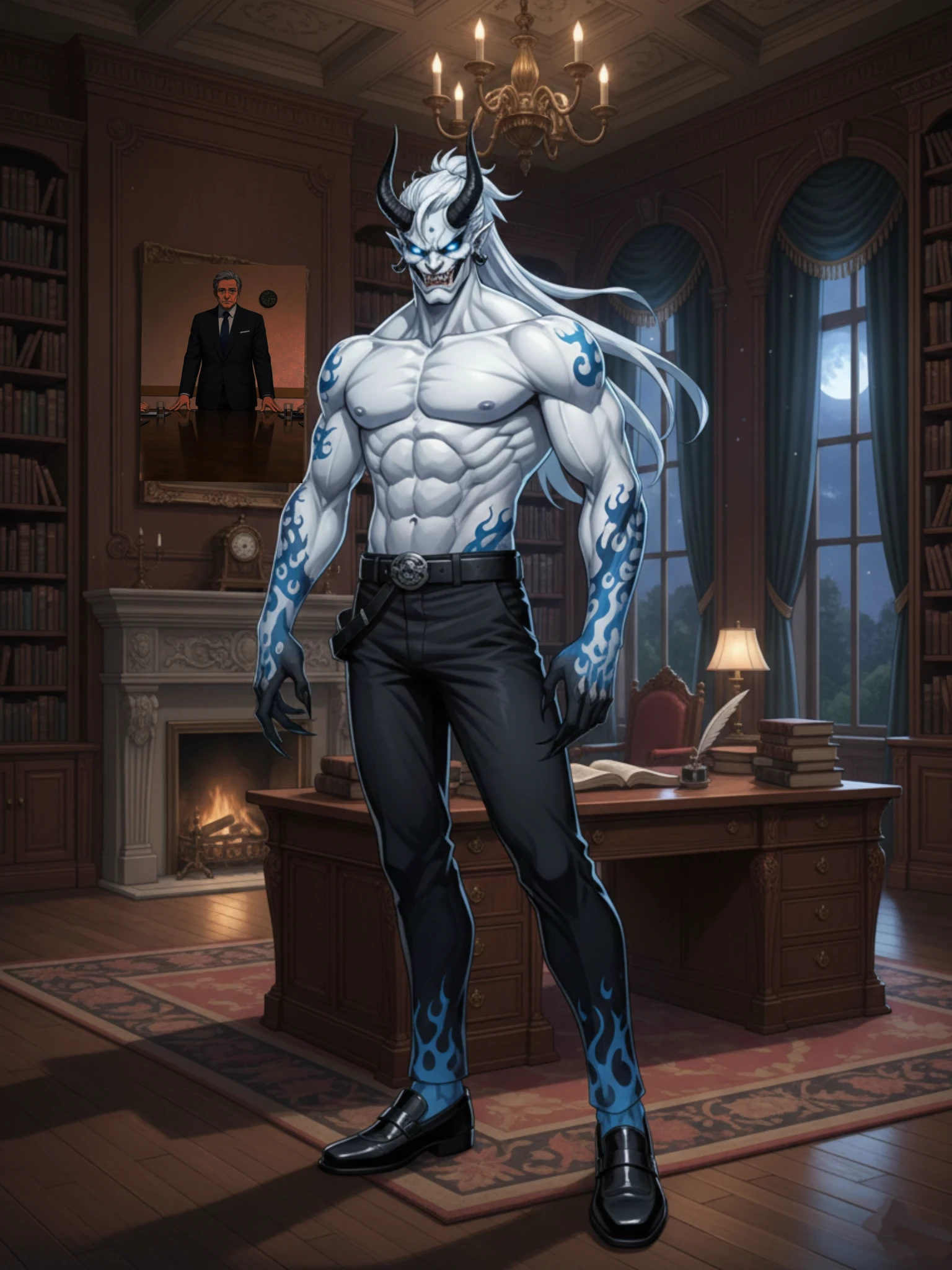 A disciplined Japanese executive who willingly dons an ancient oni mask, becoming a mythic force guided by resolve rather than rage.