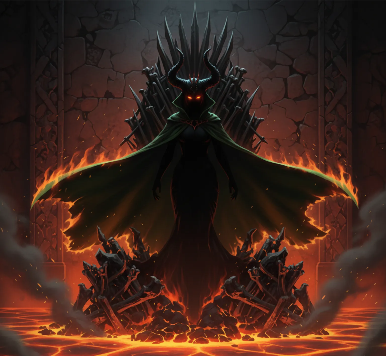The Horned Queen is not chaos — she is consequence — a ruler whose dominion reshapes choice itself.